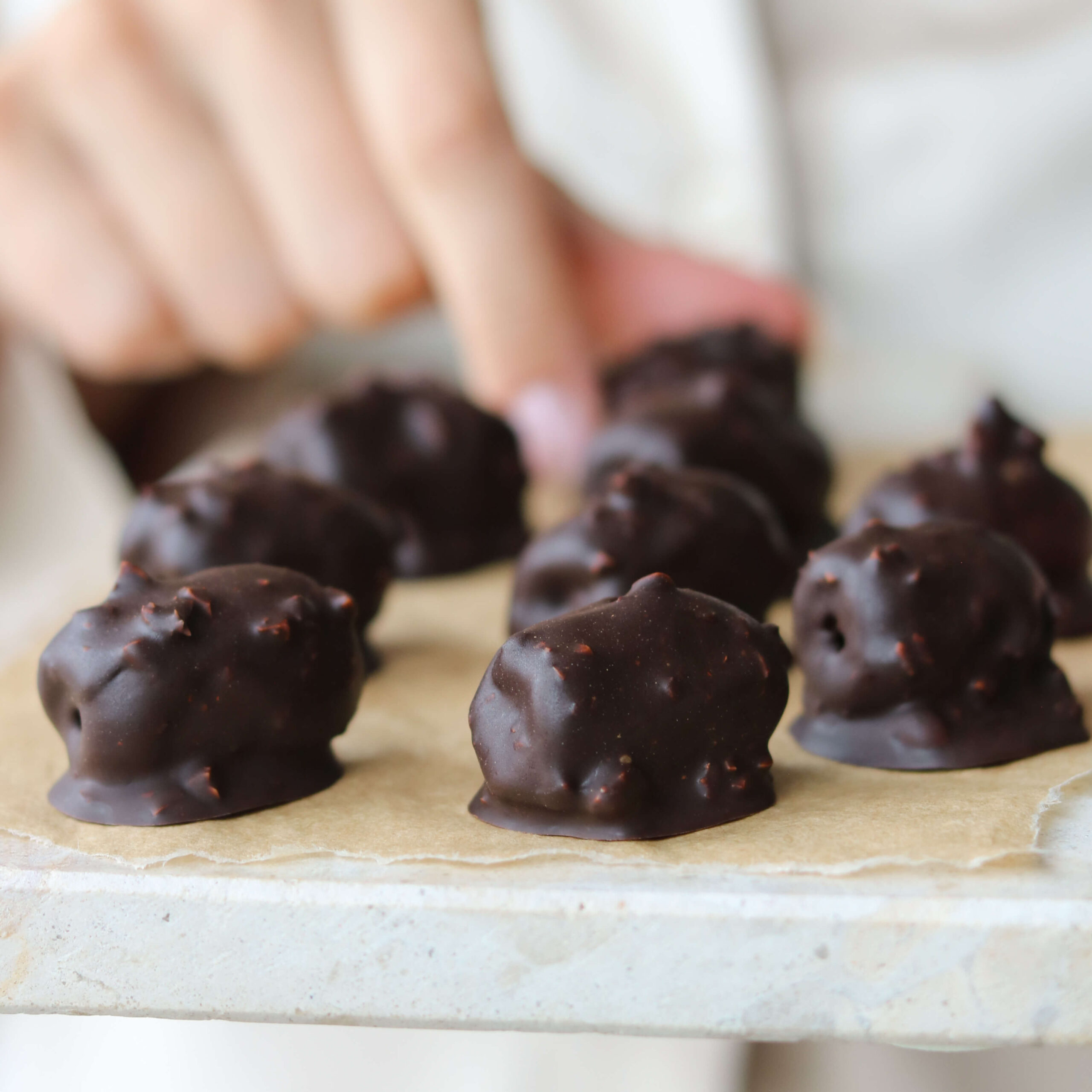 De her ferrero rocher dadler er en helt genial og nem sundere snack, som smager sindssygt lækkert! 😍🤤🍫 De kombinerer den naturlige sødme fra de bløde dadler med den nøddeagtige smag af ristede hasselnødder og et sprødt lag mørk chokolade. Resultatet er en uimodståelig hjemmelavet ferrero rocher i en sundere udgave med få og primært naturlige ingredienser.